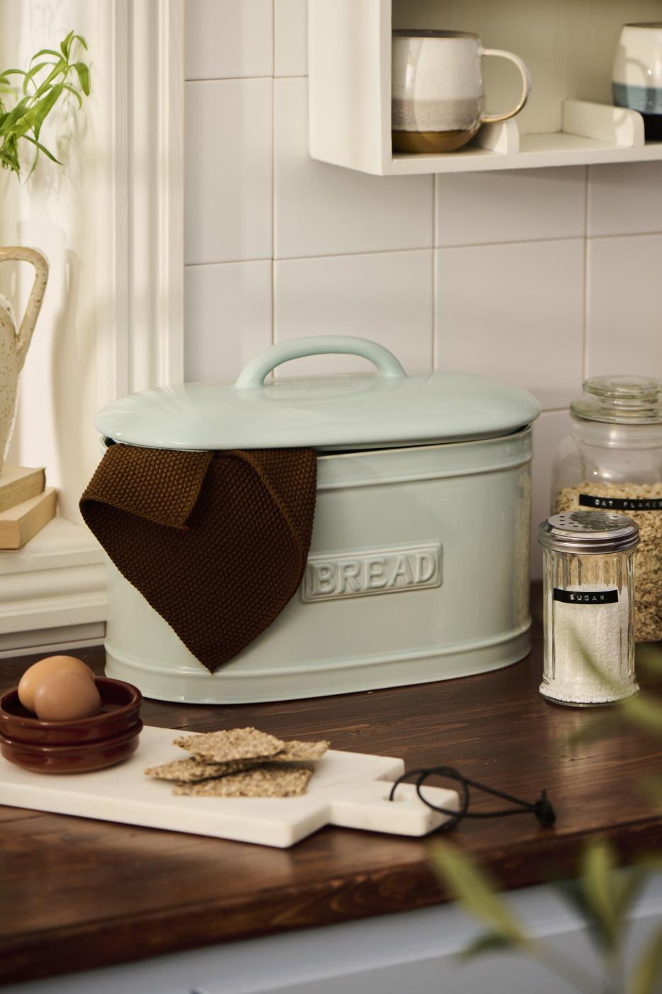 Kaunis ja praktiline ovaalne leivakarp, mis on valmistatud kvaliteetsest keraamikast. Helesinine toon lisab köögile värskust ja elegantsi, samas kui klassikaline vorm hoiab leiva ja saiakesed kenasti korras. Stiilne hoiustamisviis, mis on ühtaegu nii praktiline kui ka dekoratiivne.