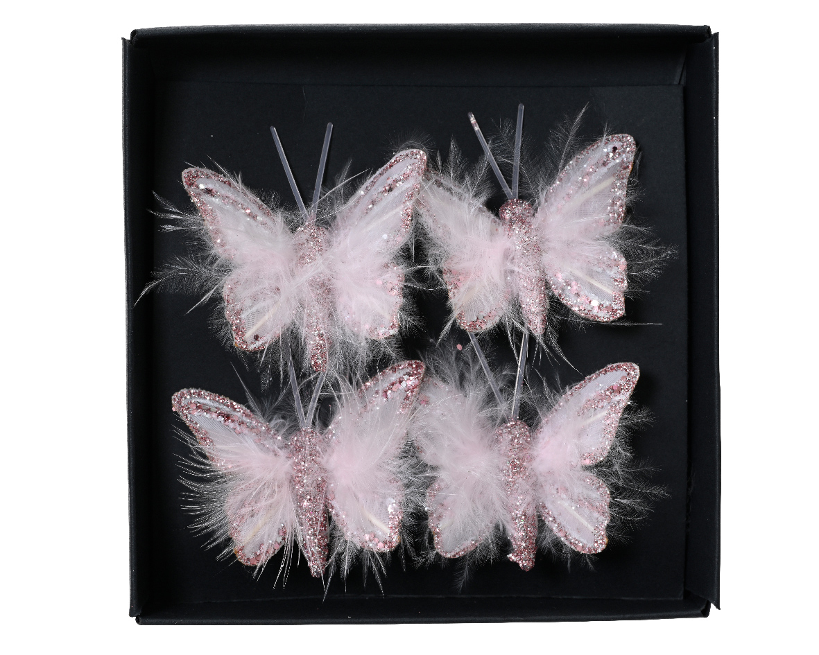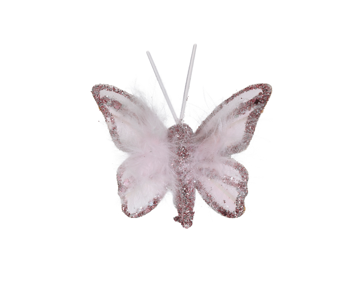 Liblikas sulgedega klambril 4tk/pk 5x3,5xh1cm roosa