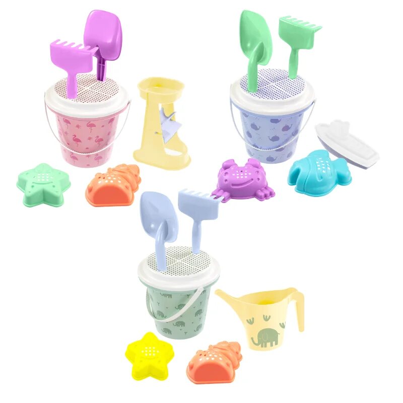 Liivakasti mänguasjade komplekt praktilises ämbris pakub väikestele mängijatele hulgaliselt lõbusat tegevust liivakastis või rannas. Komplektis võivad olla näiteks kühvel, sõel, liivavormid ja muud põnevad liivamänguasjad, mis arendavad loovust ja peenmotoorikat. Ämber muudab komplekti hoiustamise ja kaasavõtmise lihtsaks.