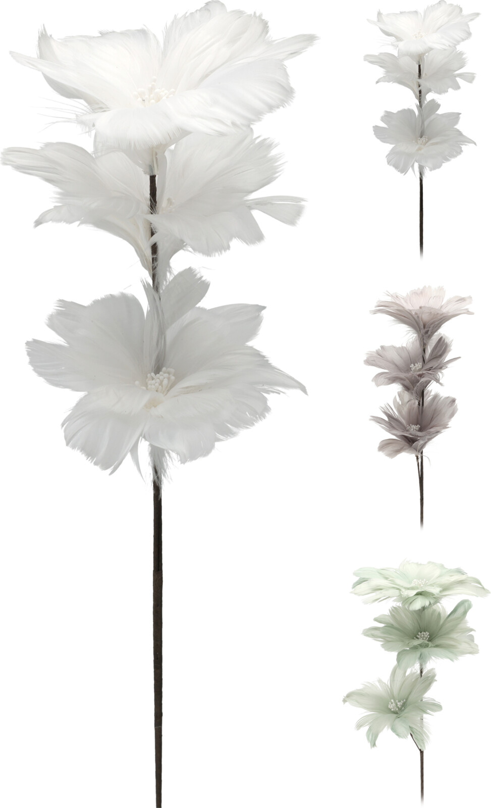 Dekoratiivsed oksad ja vanikud Lill sulgedest 65x8x8cm valge/h.hall/h.roheline, 1tk