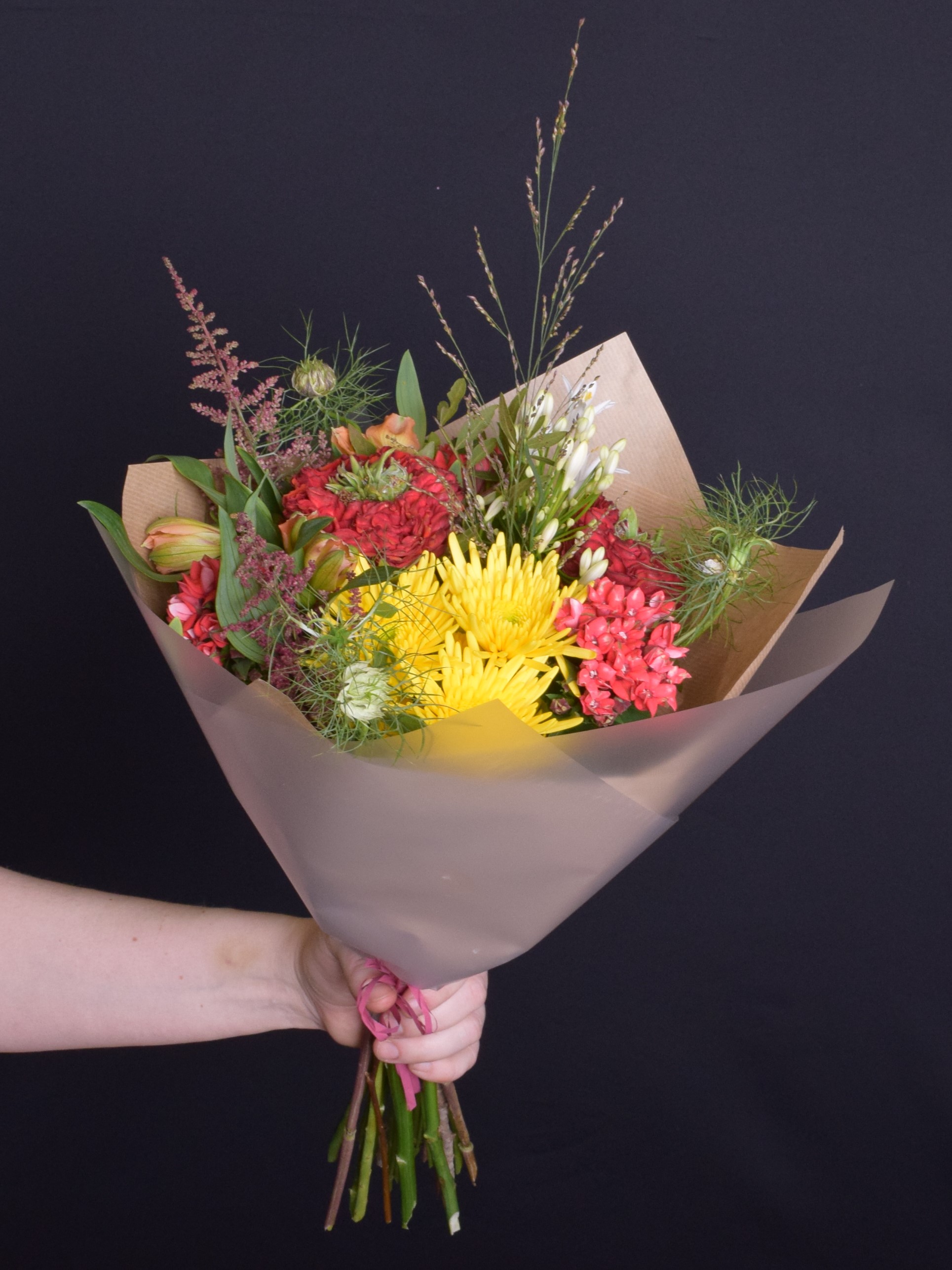 Palume tähele panna, et kimbus olevad lilled võivad varieeruda sõltuvalt saadavusest, kuid kimbu üldine tonaalsus ja suurus jäävad samaks.