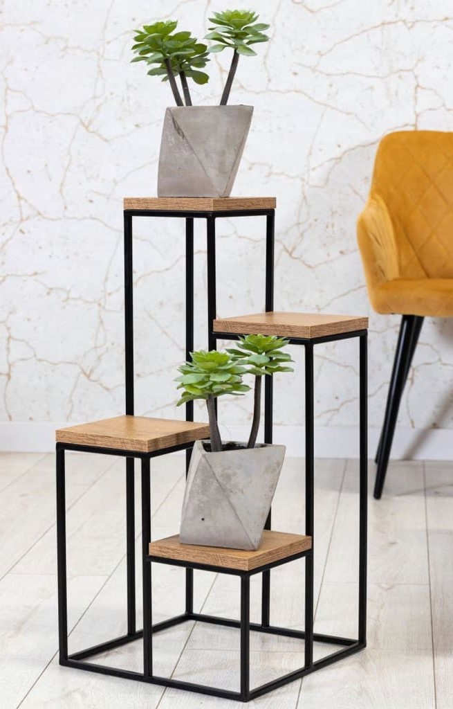 Stiilne ja praktiline 4-tasandiline lillepostament, mis ühendab vastupidavuse ja elegantse disaini. Pulbervärvitud metallraam ja puidust riiulid tagavad stabiilsuse ning pikaajalise kasutuse.