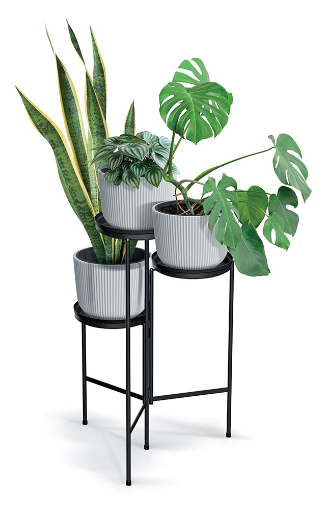 Kolmest eri kõrgusel asetsevast alusest koosnev disain võimaldab taimede mitmetasandilist paigutust, tuues igale taimele rohkem tähelepanu. Tänu minimalistlikule ja industriaalstiilis välimusele sobitub see hõlpsasti nii kaasaegsesse kui ka klassikalisse interjööri.