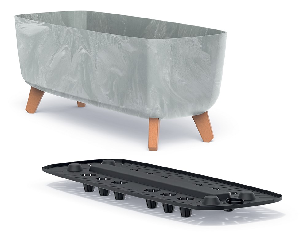 Gracia Case betooniefektiga lillepott ühendab pikliku, sujuva vormi ja modernse, betooni meenutava viimistluse. Ristkülikukujuline pott sobitub hästi aknalauale, riiulile või terrassipiirdele. Puiduimitatsiooniga jalad lisavad kaasaegsele disainile klassikalise aktsendi ning tõstavad poti kergelt põrandapinnast kõrgemale.