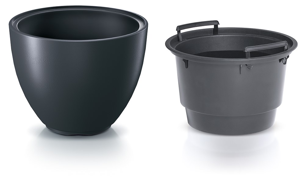 Pott on valmistatud vastupidavast plastist, mis talub hästi nii külma, kuumust kui ka UV-kiirgust, mistõttu sobib see kasutamiseks aastaringselt. Komplektis olev eemaldatav sisupott muudab istutamise lihtsamaks – selle saab tänu käepidemetele mugavalt välja tõsta ning täita vaid vajaliku koguse substraadiga.