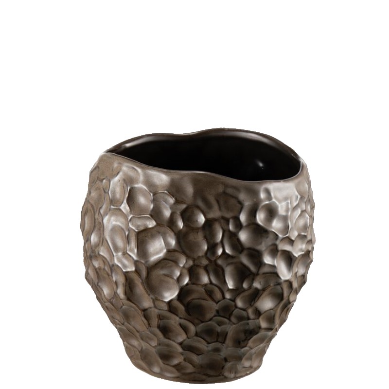 Herman sarja mattpruun lillepott on tugevast keraamikast ning efektse reljeefse pinnaga, mis lisab ruumi karakterit ja sügavust. Käsitsi valmistatud lillepotil on läikiva glasuuriga sisepind ning iga ese on mustri ja toonivarjundite poolest ainulaadne.