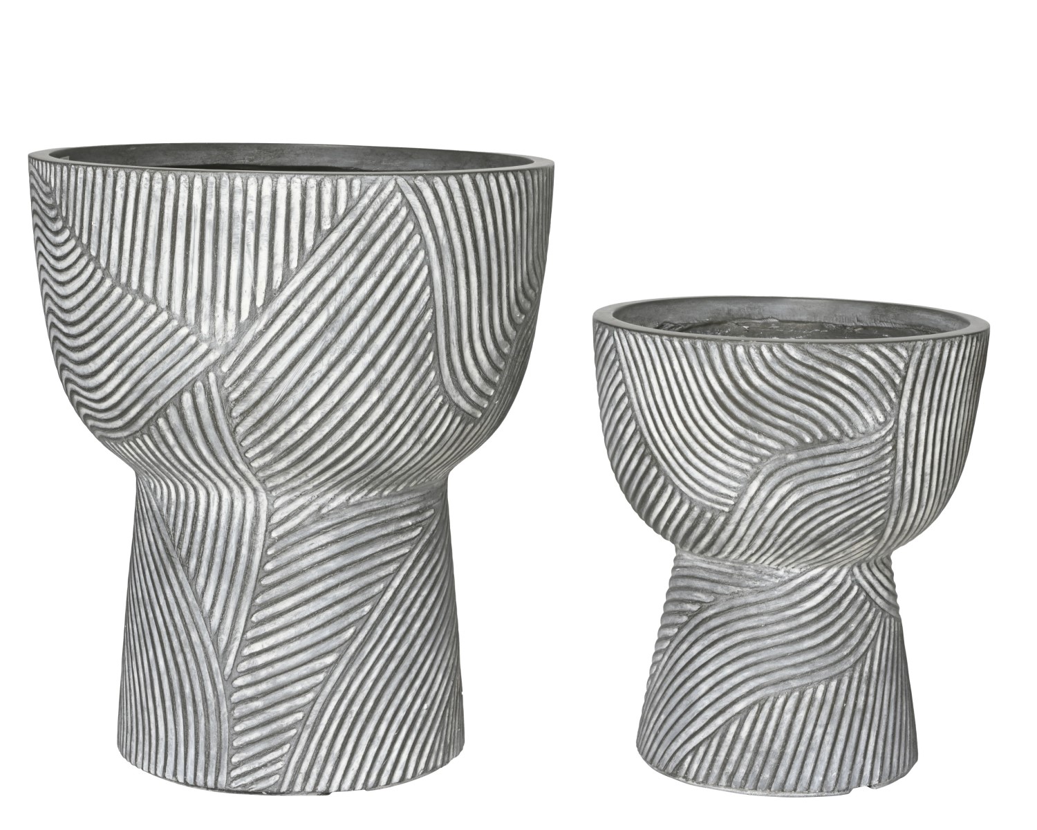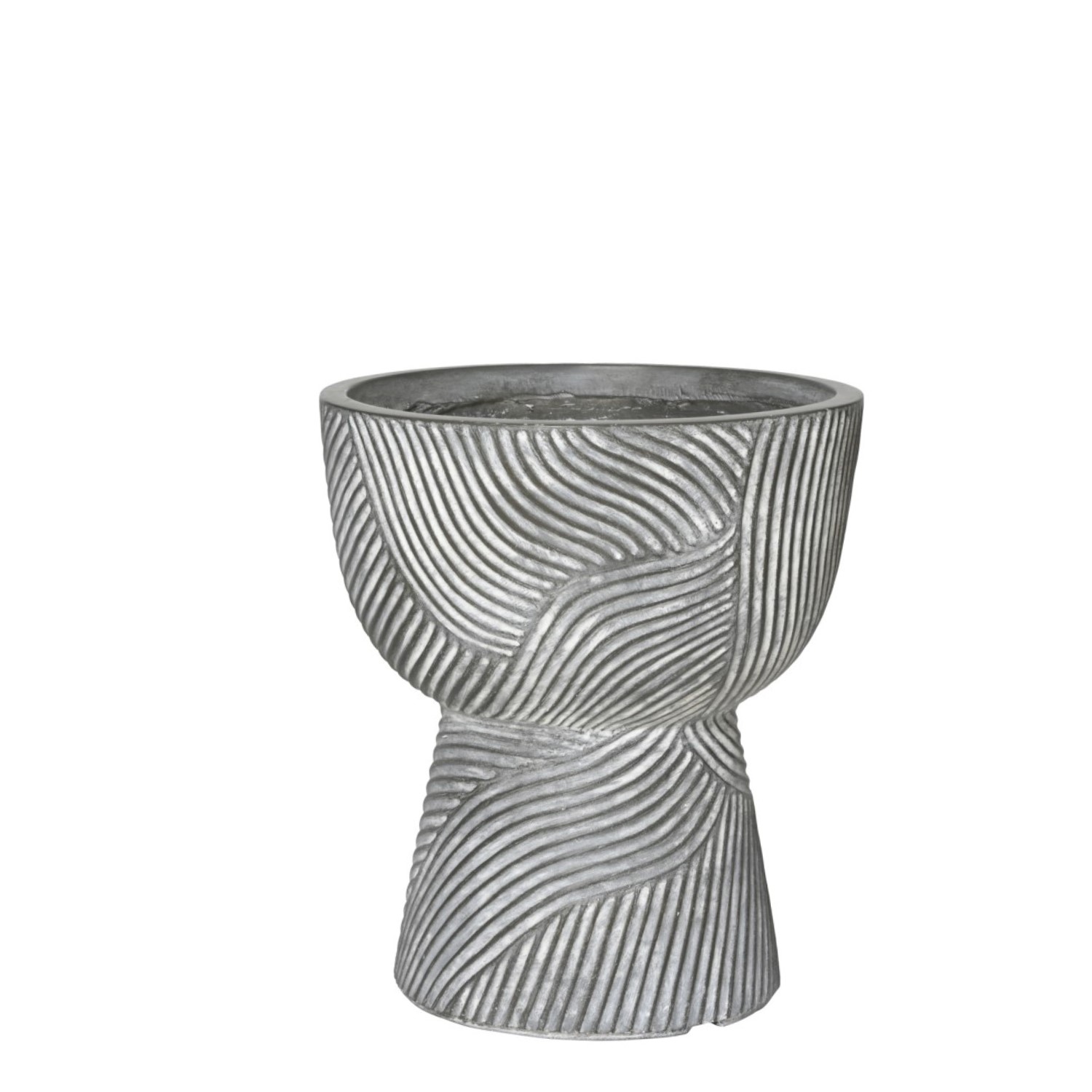 Kane lillepott on valmistatud fiiberkivist, mis ühendab kivi tugevuse ja kergema kaalu. Reljeefne geomeetriline pinnamuster ja skulptuurne vorm annavad potile dekoratiivse ilme, mis sobib hästi nii aeda, terrassile kui ka siseruumi.