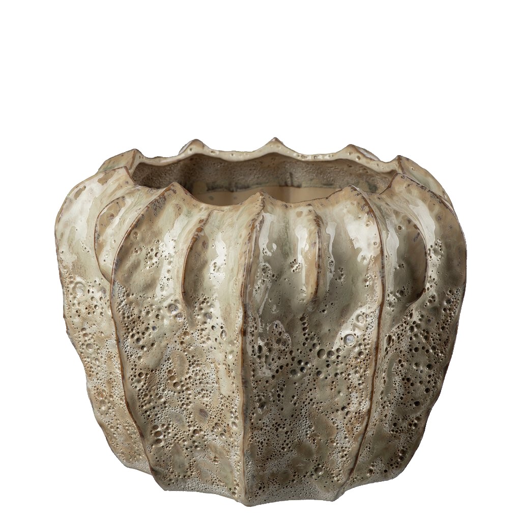 Lindy lillepott paistab silma reljeefse ja ebaühtlase pinnaviimistlusega, mis annab sellele maalähedase ja naturaalse ilme. Pehme toon aitab taimed paremini esile tuua ning sobitub erinevate sisekujundustega. Pott täiendab ruumi rahuliku ja tasakaalustatud üldmuljega.