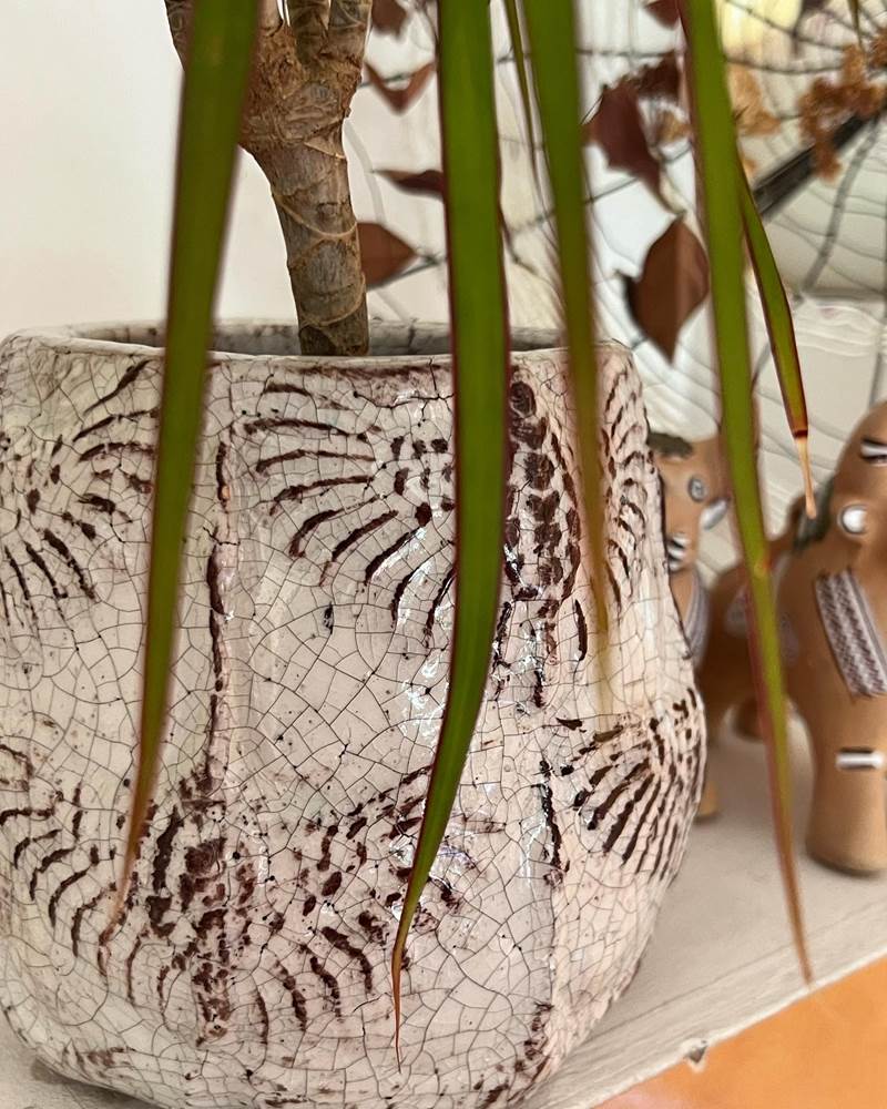 Linnud lillepott on ainulaadne keraamiline ümbrispott, millel on tiibu sirutavate lindude motiiv – efektne kujundus, mis lisab ruumile isikupära ja pehmust. Muster sulandub sujuvalt poti kujuga ja tuleb eriti hästi esile naturaalse valge ja pruuni kombinatsioonis.