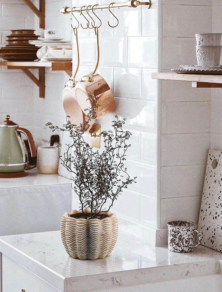 Merekarp lillepott võlub oma ajatu ja looduslähedase välimusega. Kreemikat tooni keraamilise pinna katavad horisontaalsed lainelised vaod ning peen keraamiline kivipurukate, mis loovad justkui meretuulte silutud merekarbi efekti. Tulemuseks on rustikaalne ja harmooniline disain, mis toob interjööri lõunamaist suvehõngu.
