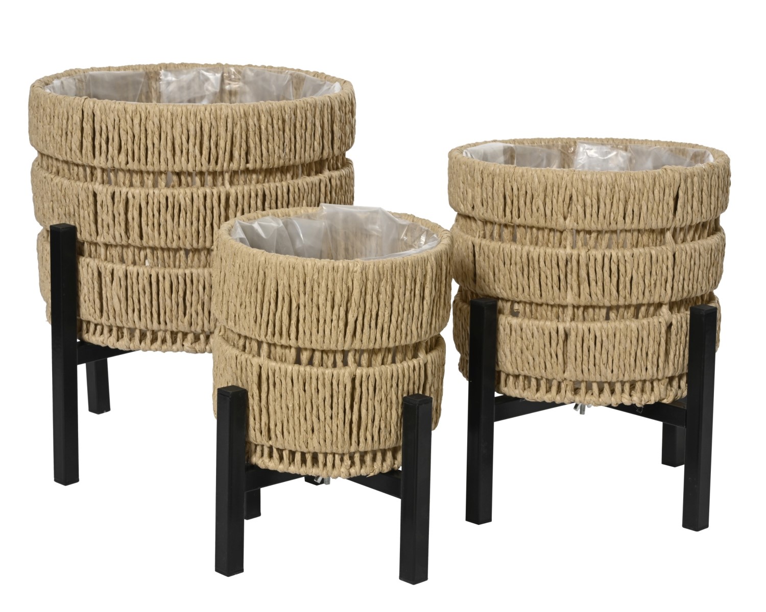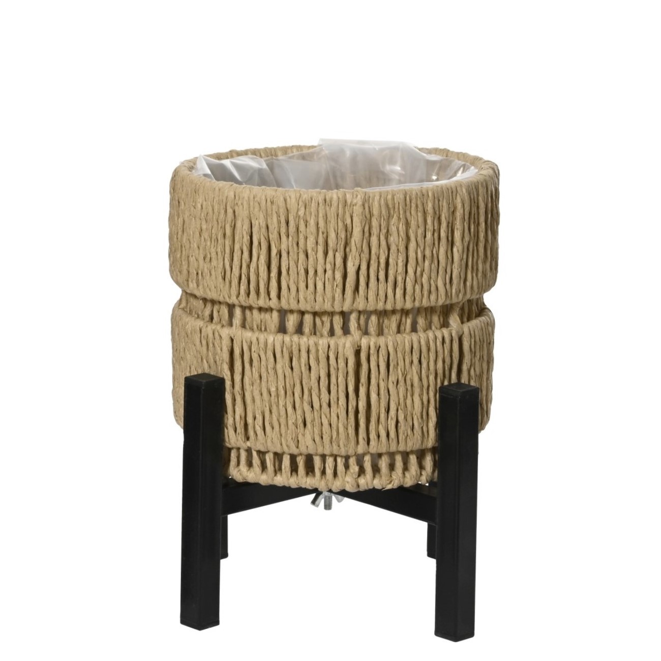 Ümmargune lillepott metalljalgadel sobib hästi toataimede eksponeerimiseks. Pott on valmistatud punutud paberkiust ning sisemus on vooderdatud plastiga, mis aitab kaitsta potti niiskuse eest. Tõstetud metallalus annab taimele kõrgust ja toob selle interjööris paremini esile.