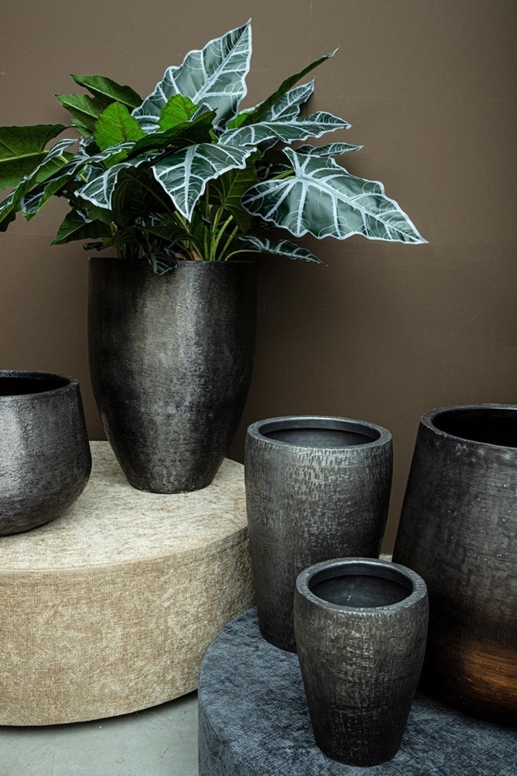 Kõrge ja saleda vormiga Miale lillepott, mis sobib hästi kaasaegsesse ja modernsesse interjööri. Antrasiitne toon ning kergelt tekstuurne pind annavad potile rahuliku ja ajatu ilme. Tänu oma proportsioonidele sobib see hästi nii põrandale kui ka madalamale alusele paigutamiseks, kus taim saab diskreetselt esile tulla. Alumiiniumist materjal muudab poti visuaalselt kergeks, kuid samas vastupidavaks ja stabiilseks.