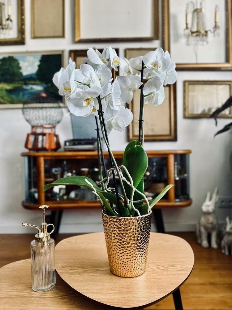 Orhideepott Moon on pilkupüüdva mustriga keraamiline pott, mis lisab ruumile glamuuri ja luksuslikkust. See õhukeseseinaline keraamiline pott on käsitsi valmistatud ja viimistletud kõrgekvaliteedilise kuldse glasuuriga.