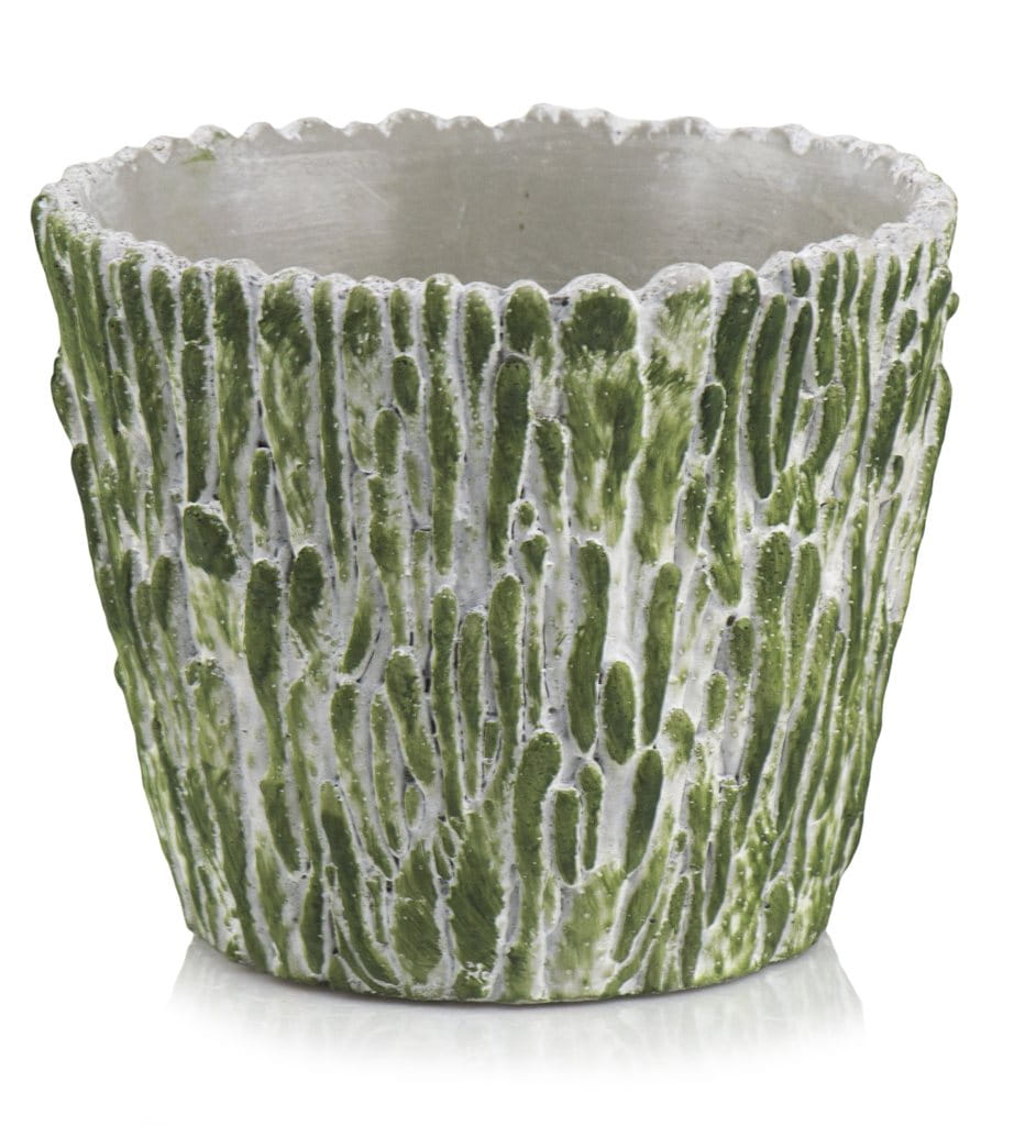 Muru lillepott köidab pilgu omapärase pinnatekstuuri ja värviga: roheline pind on kaetud valgete “okaste” meenutava mustriga, mis viitab mahedalt kaktustele. See mänguline detail annab potile sümpaatselt looduslähedase välimuse. Ümbrispott sobib suurepäraselt roheliste taimede esiletoomiseks, luues ühtse ja visuaalselt huvitava koosluse ruumis.