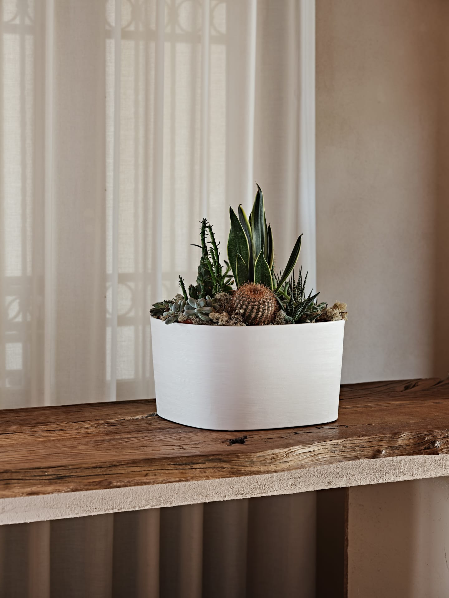 Rodi lillepott on ideaalne valik sukulentidele ja kaktustele, mille juurestik ei vaja sügavat mullakihti. Ajatu disainiga pott on valmistatud taaskasutatud ja ümbertöödeldavast plastist.