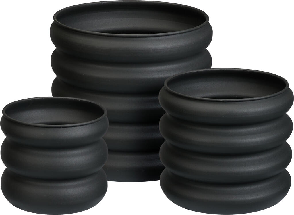Suur ümara kujuga tumehall lillepott on reljeefse soonemustriga ning modernse välimusega. Sobib hästi suuremate taimede istutamiseks ning loob terrassil või aias pilkupüüdva rohelise lahenduse. Valmistatud tsingitud metallist ja mõeldud kasutamiseks välitingimustes.