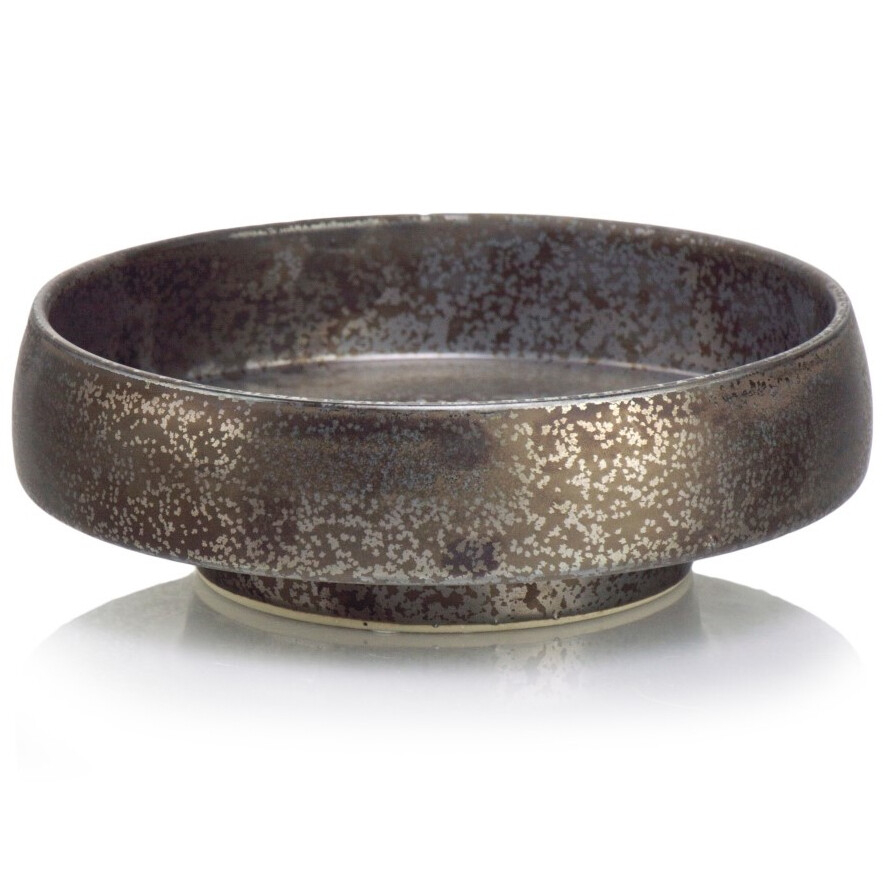 Vintage sarja madal ümmargune vaagen on valmistatud glasuuritud keraamilisest materjalist, mis esmapilgul võib meenutada metallist nõud. Vaagent iseloomustab antiikne välimus ja ainulaadne värvipalett, mis ühendab endas tumedat hõbedat, graniiti, halli ning grafiit-pruuni tooni.