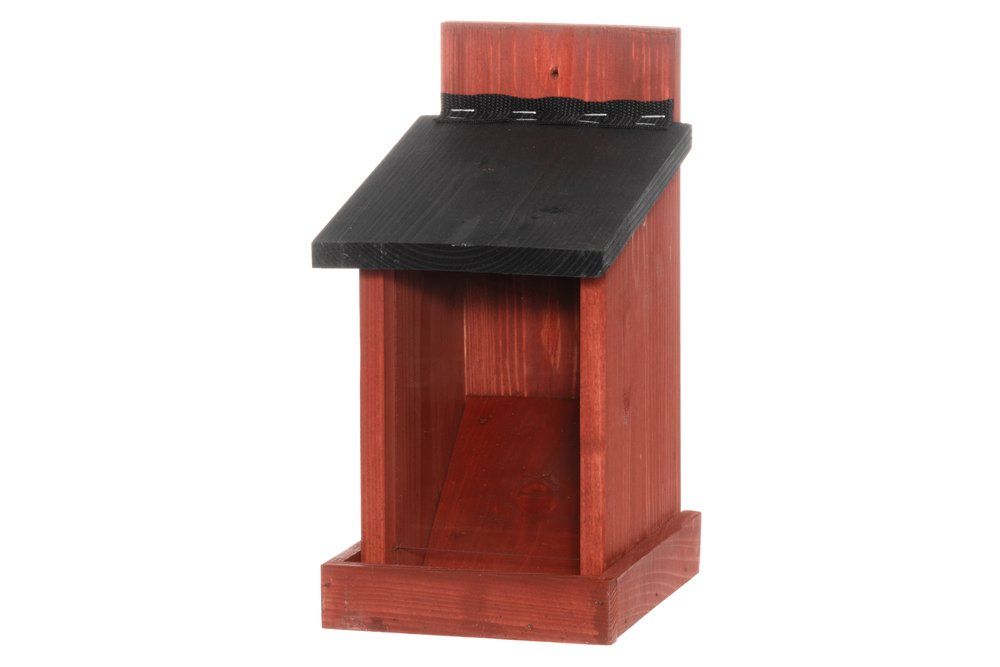 Punane puidust lindude söögimaja.