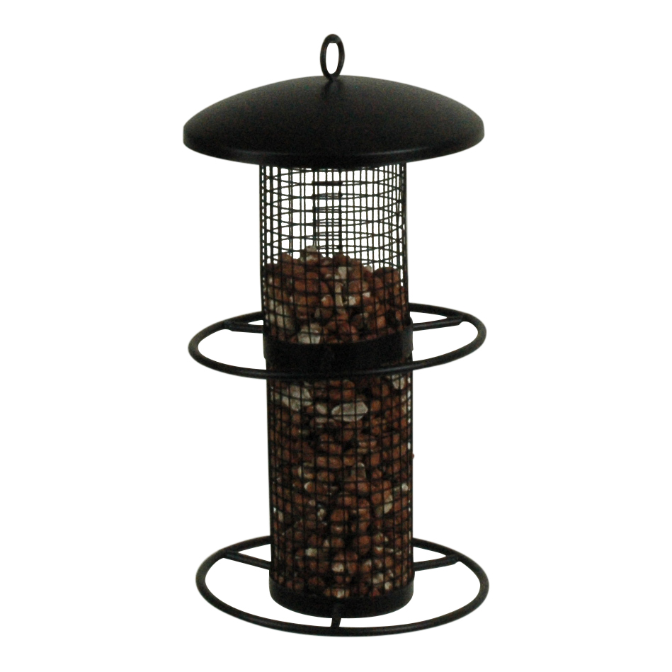 Metallist linnusöögimaja pähklitele on lihtsalt avatav ja täidetav. Komplektis on kinnitusnöör.
