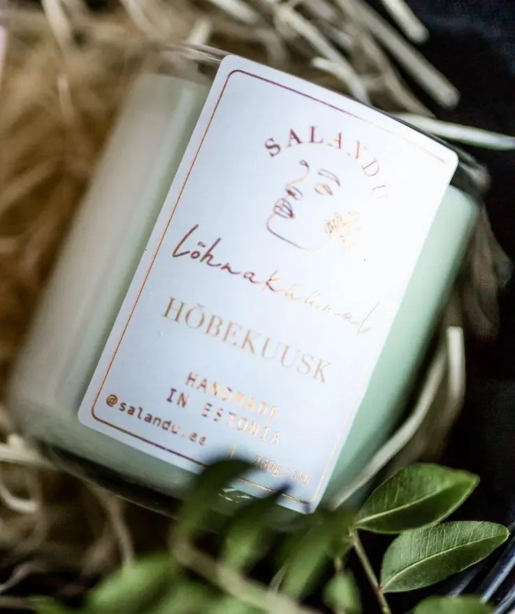 Salandu lõhnaküünal Hõbekuusk on käsitööna valminud hubane meeleoluküünal, mis toob tuppa Lõuna-Eesti metsade värskuse ja rahu. Küünal on õrna rohelise tooniga ning kaunistatud detailidega, mis annavad sellele elegantse ja kingituseks sobiva välimuse.