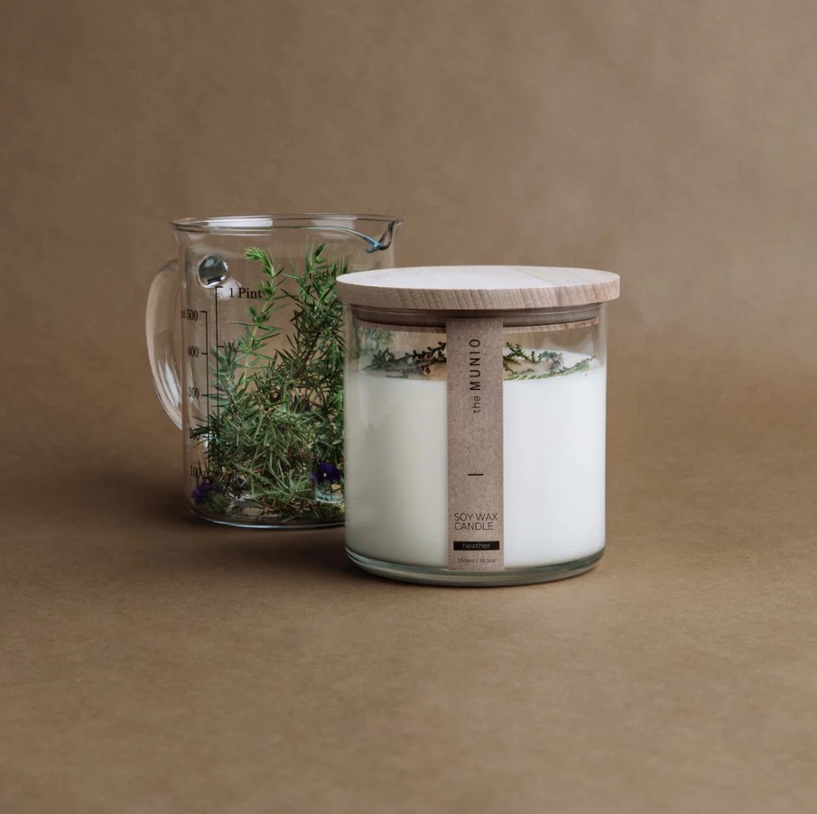 Lõhnaküünal Munio kadaka ja merelavendliga puidust tahiga 550ml 50h