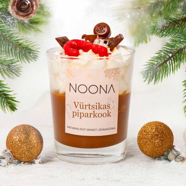 Vürtsikas piparkoogi lõhnaküünal toob koju tõelise jõulutunde, nagu vanaema küpsetaks köögis piparkooke – soojade vürtside ja magusa küpsetise lõhn täidab kogu ruumi. Küünalt kaunistavad armsad piparkoogimehike ja jõulukommikepike, mis loovad piduliku ja rõõmsa meeleolu. Täiuslik valik pühade meeleolu nautimiseks. Küünaldel võib esineda värvitoonide kergeid kõikumisi, kuna kõik koostisosad segatakse käsitsi kokku.