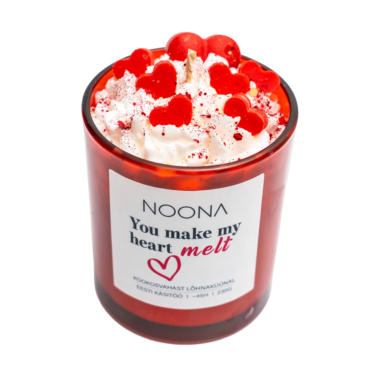 Lõhnaküünal “ou make my heart melt on loodud ütlema kõiki neid sõnu, mida on vahel raske hääldada. Magus ja soe vanilje aroom loob hubase, hellust ja turvatunnet kiirgava õhkkonna – täpselt sellise, nagu üks tõeline sõbrapäevaõhtu olema peab. Punane klaas sümboliseerib armastust ning südamekujulised detailid lisavad romantilist hõngu, muutes küünla ka kauniks sisustuselemendiks. See on ideaalne kingitus kallimale või iseendale, sest armastus algab alati soojusest.