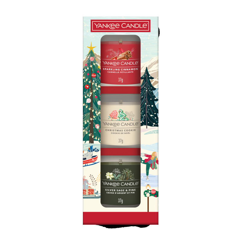 Yankee Candle’i kinkekomplektis on kolm hoolikalt valitud talvehooajale sobivat lõhna, mis loovad hubase ja piduliku meeleolu. Väikesed klaasanumates sojaküünlad sobivad hästi kingituseks ning põlemise järel saab anumaid kasutada teeküünalde hoidjatena.