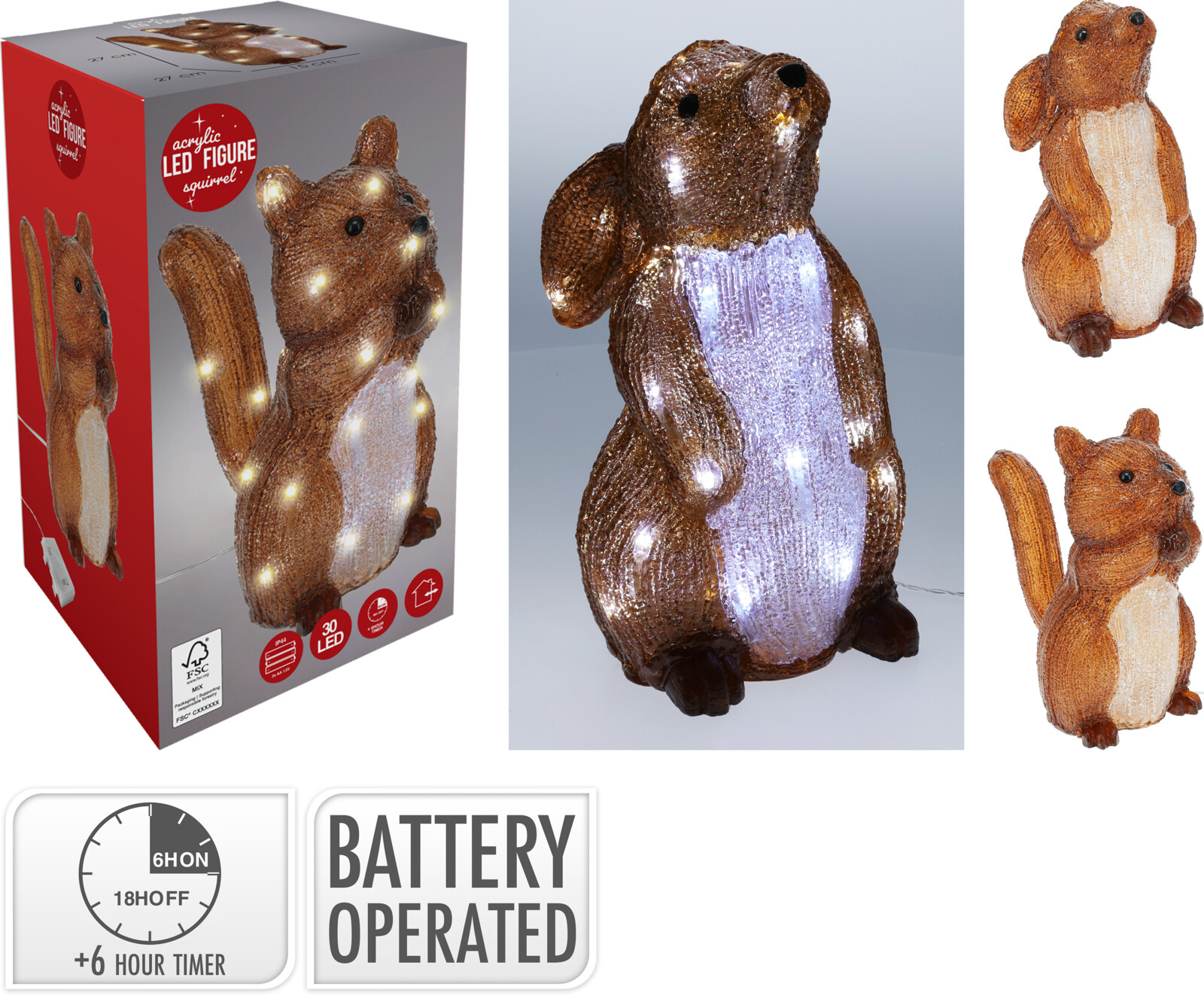 Jõulukaunistus – jänes või orav LED-valgustusega lisab sinu koju rõõmsa ja hubase jõulumeeleolu. Vali jänes või orav – mõlemad on valmistatud akrüülist ja varustatud 30 sooja valge LED-lambiga. Aseta need aknalauale, riiulile või lauale ning naudi hubast tulemust, mis lisab jõulukaunistustele soojust ja rõõmsat meeleolu.