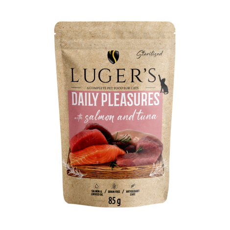 Luger’s Daily Pleasures märgtoit kassile lõhe ja tuunikalaga on täisväärtuslik ja tasakaalustatud märgtoit täiskasvanud kassidele, mis sobib igapäevaseks toitmiseks ning katab 100% kassi toitainevajadusest vastavalt kaasaegsetele toitumissoovitustele. Retsept sobib ka kassidele, kellel on tundlik seedimine või eripärased toitumisvajadused.