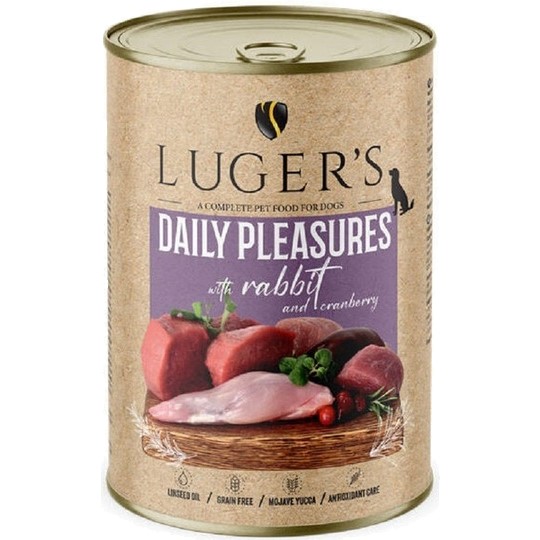 Luger’s Daily Pleasures märgtoit koerale küüliku ja jõhvikatega on täisväärtuslik ja teraviljavaba märgtoit täiskasvanud koertele kõikidest tõugudest, sobides eriti hästi tundliku seedimise või nõudlikuma toitumisvajadusega koertele. Retsept vastab kaasaegsetele toitumisstandarditele ning on mõeldud igapäevaseks tasakaalustatud toitmiseks.