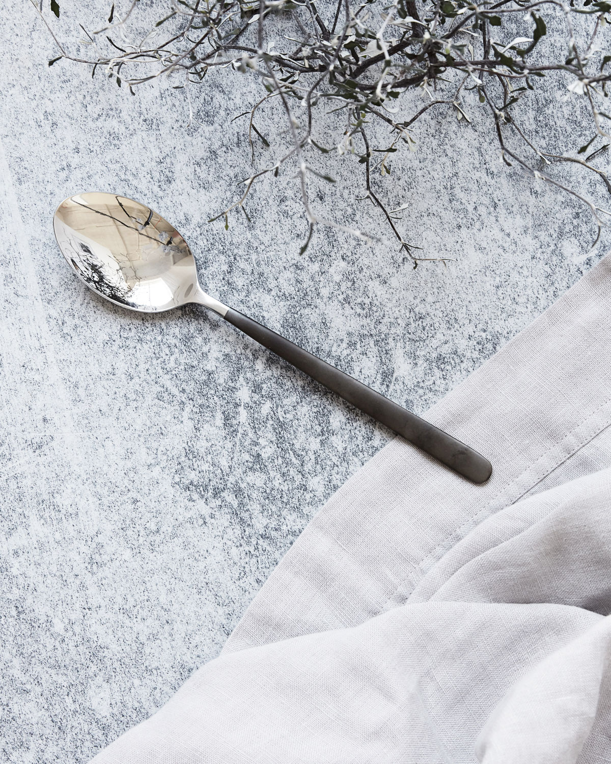 House Doctori lusikas on valmistatud roostevabast terasest ja selle saba on kaetud tumeda titaankattega. Roostevaba terase ja titaani kaunis kombinatsioon lisab lihtsale lauakattele kena kontrasti. Ox söögiriistu saab kasutada nii igapäevastel puhkudel kui ka pidulikel koosviibimistel. Lusikas on nõudepesumasinas pestav.