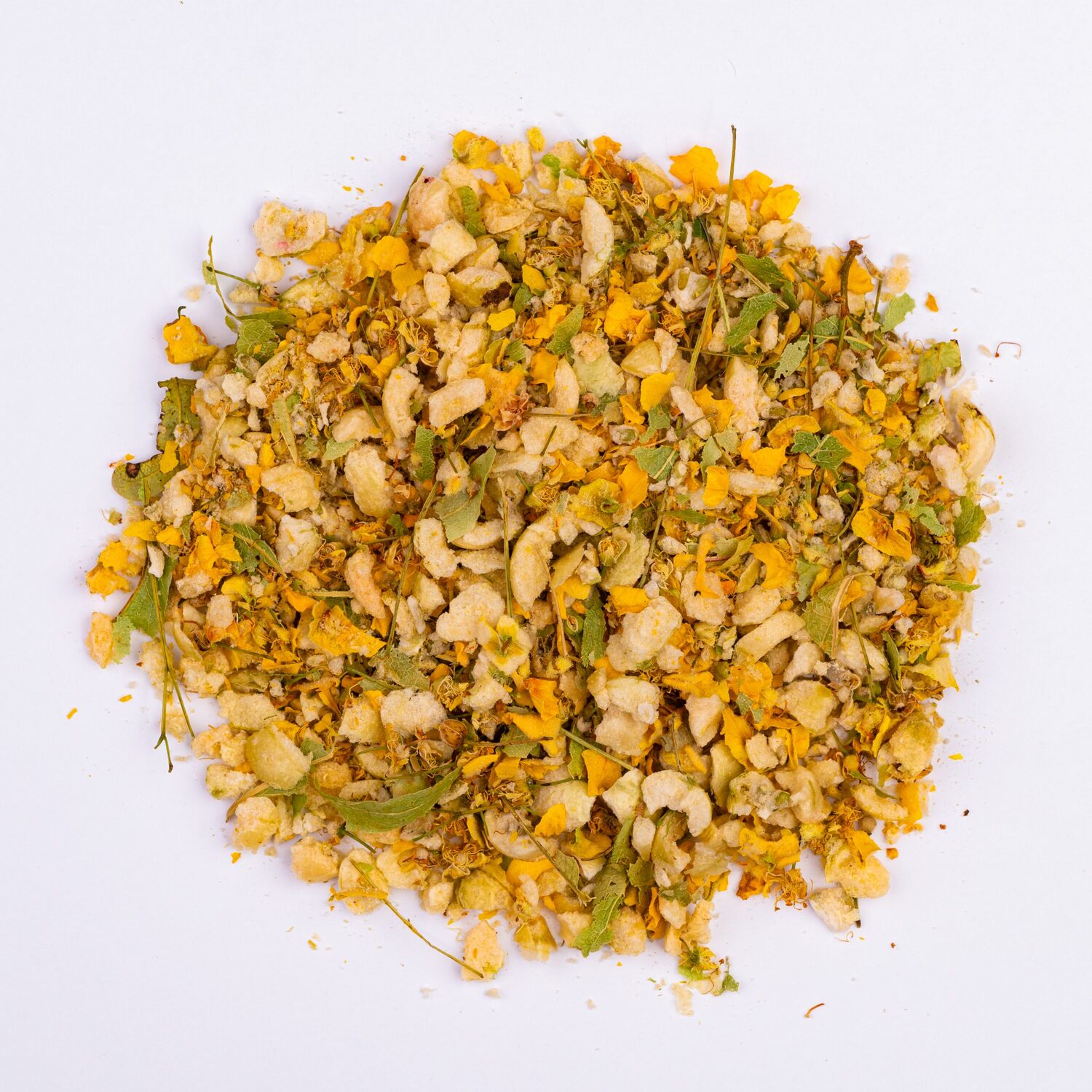 Mahe taimetee Üheksavägine pärnaõie ja tikriga 20g ühendab lummava pärnaõie, särtsaka karusmarja ja päikesekollase üheksavägise, viies sind hetkega tagasi lapsepõlve säravkollastesse suvedesse. Pärnaõis pakub mesist lõhna ja rahustavat toimet, tikker lisab hapukat värskust ning üheksavägine toetab hingamisteid ja organismi loomulikku vastupanuvõimet. Koos loovad need taimed maheda, päikselise ja kosutava tee, mis sobib nautimiseks igal ajal – eriti siis, kui haigus kipub ligi ja vajad looduse turgutust.