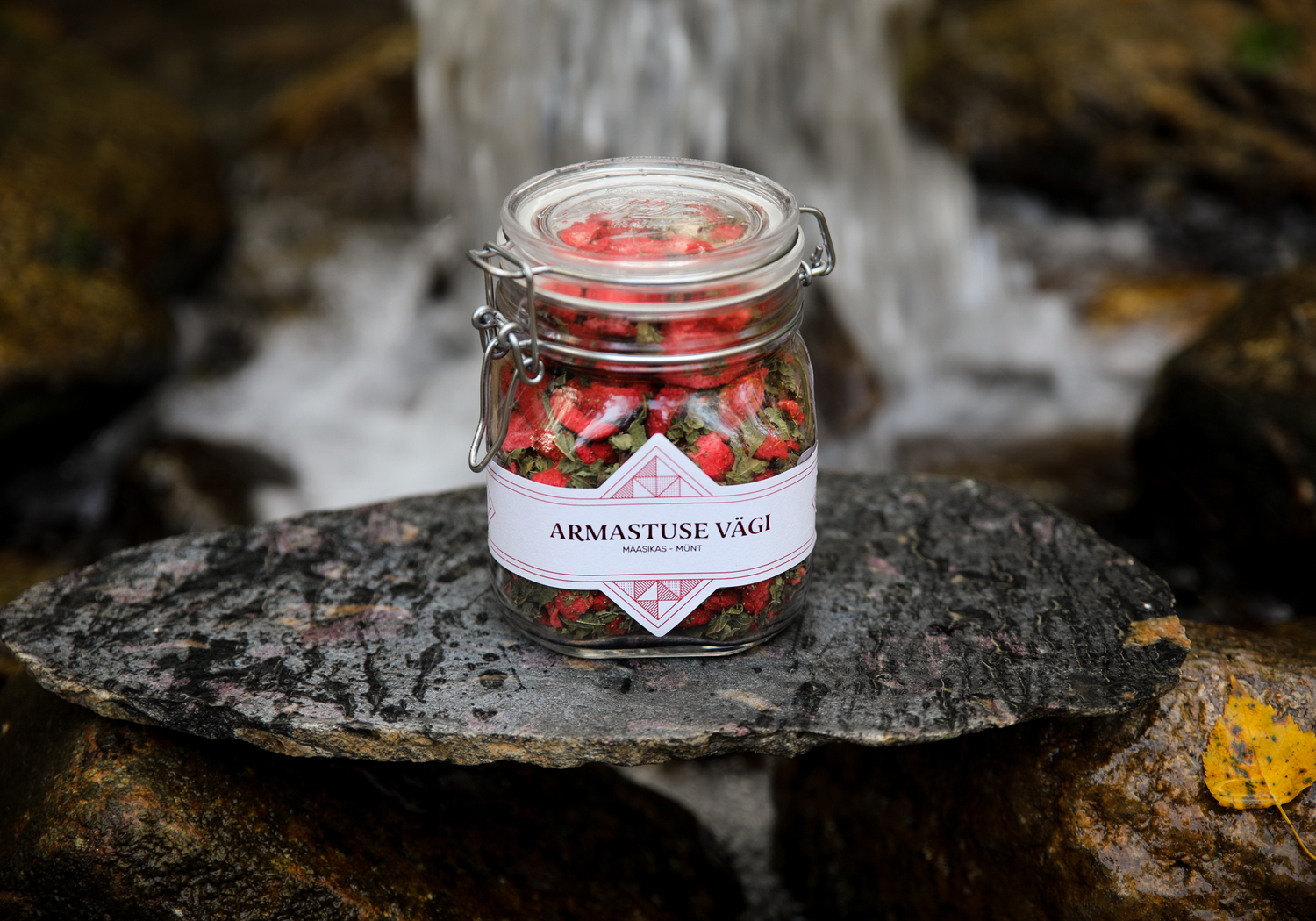 Mahe teesegu Armastuse Vägi 120g on marjane ja mõnusalt mündine teesegu, mis sünnib siis, kui külmkuivatatud maasika magusus kohtub maheda Maroko mündi värskusega. Tee paitab meeli ja loob kergema, rõõmsama enesetunde, pakkudes samal ajal kehale turgutust. Marokos on münditee jagamine lähedastega märk sõprusest ja siirast armastusest – sama hooliv energia peitub ka selles teesegus. Maasikas lisab teele rikkalikult C-vitamiini ning lavendlise mündine noot rahustab meelt ja toetab sisemist tasakaalu. Tee on kofeiinivaba ning sobib suurepäraselt igapäevaseks nautimiseks. Kui Armastuse Vägi saabub kingitusena, siis tea – see on soe ja südamlik sõnum, et oled hoitud ja armastatud.