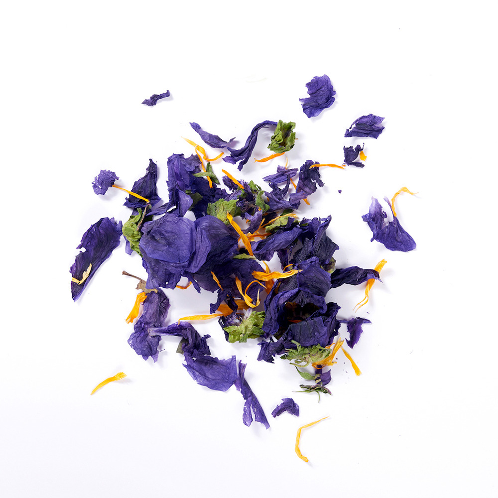 Mahe teesegu Helluse Vägi 40g pakub tõelist vaatemängu, muutudes tassis lummavsinisest roheliseks ja lõpuks rõõmsalt kollaseks – kõik täiesti looduslikult ja ilma lisaaineteta. Mets-kassinaerise õied hellitavad karedat kurku, neelu ja häälepaelu, piparmünt lisab värskust ning saialill toob teele õrna pehmuse.
