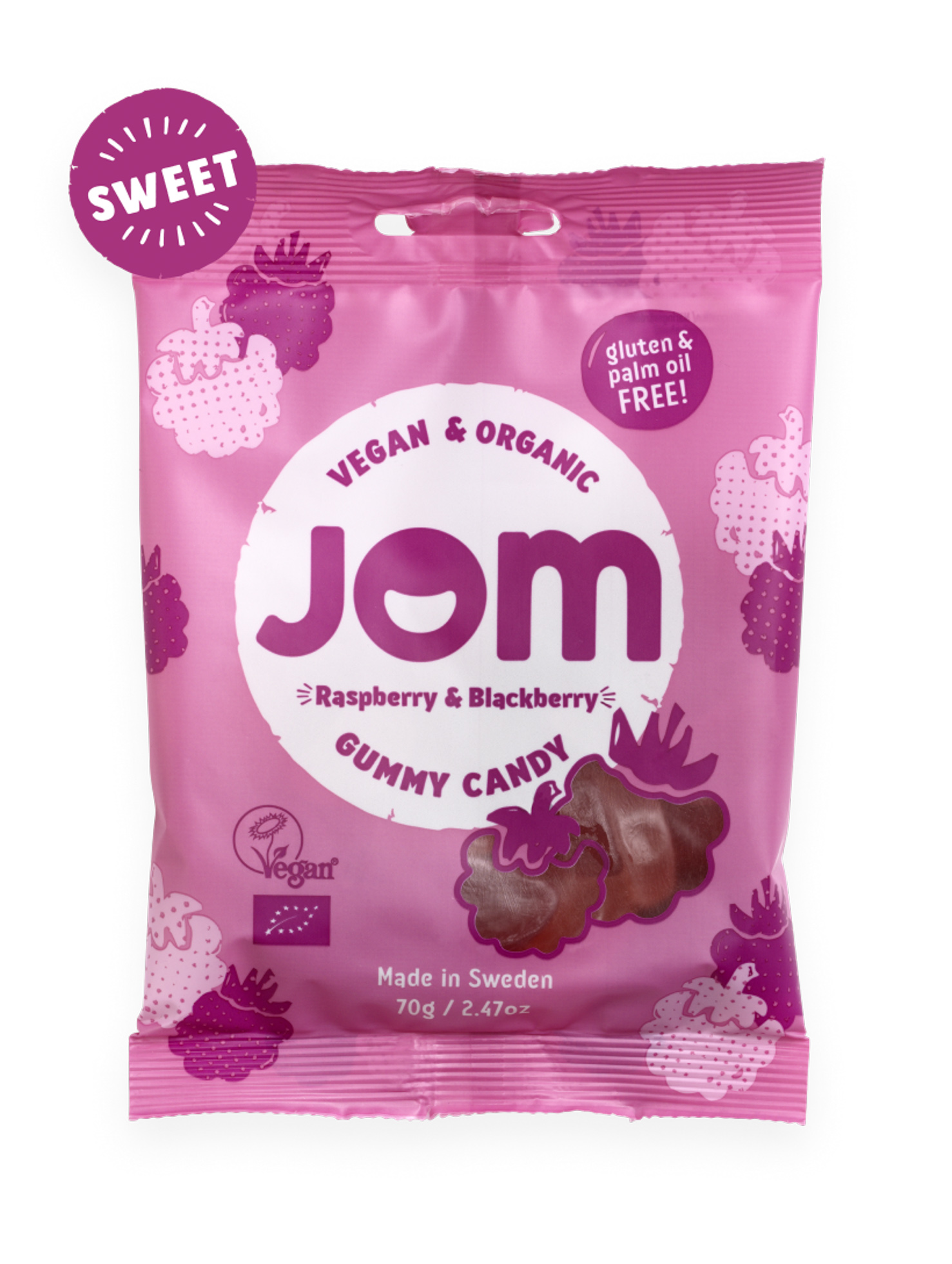 JOM on eriti uhke selle üle, et nad on ainsad mahekommide tootjat Rootsis. Virsik on paljudele juba tuttav, maasikas on tuttuus! Kommid on ikka naturaalsed ja maiasmokal teeb meele rõõmsaks. Proovi kindlasti!