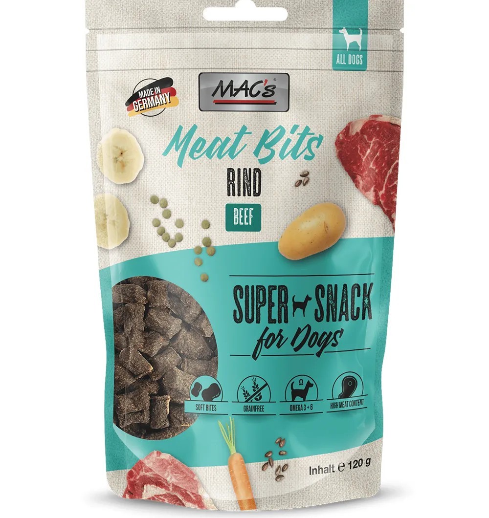 Pehme ja teraviljavaba MAC’s koeramaius, mis sisaldab 82,5% veiseliha ning on mõeldud kutsikatele ja täiskasvanud koertele kõigist tõugudest. Suure lihasisaldusega maius sisaldab köögivilju ja tervislikke rasvu. Ei sisalda teravilju, lisatud suhkrut, keemilisi säilitusaineid, sünteetilisi värv- ega maitseaineid. Toodetud Saksamaal.