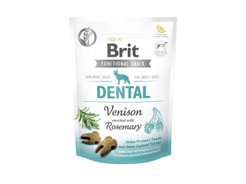 Brit Care funktsionaalne hirve ja rosmariini maius kaitseb hambaid ja igemeid hambakivi eest. Täiendsööt koertele.
