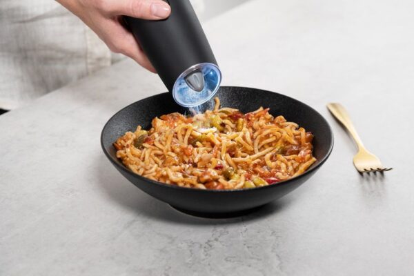 USB-C laetav vürtsiveski. Reguleeritav keraamiline veski. Veski kasutamine on lihtne, vajutage lihtsalt nuppu ja kallutage veskit. Veski ülaosas olev nupp võimaldab reguleerida jahvatuse jämedust peenemalt jämedamani.