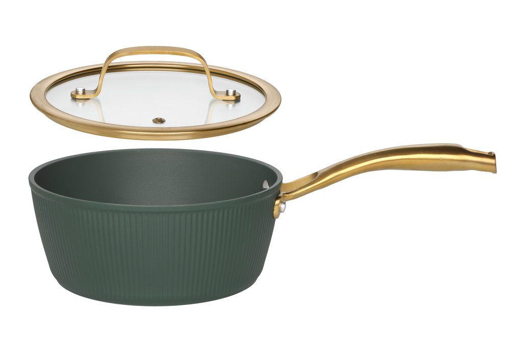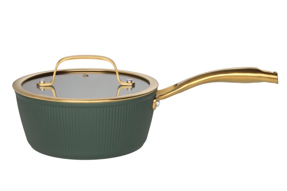Elegantne ja praktiline Maku Kitchen Life kastrul on ideaalne täiendus sinu kööki. Tumeroheline korpus koos kuldse roostevabast terasest käepidemega loob luksusliku ilme, tuues kööki nii värvi kui ka stiili. Kastrul ühendab vastupidavuse, stiili ja mugavuse, olles samaaegselt praktiline töövahend ja kaunis sisekujunduselement sinu köögis.