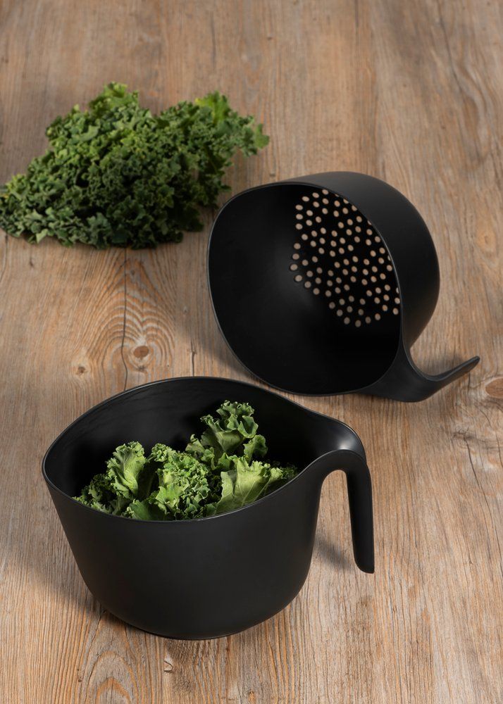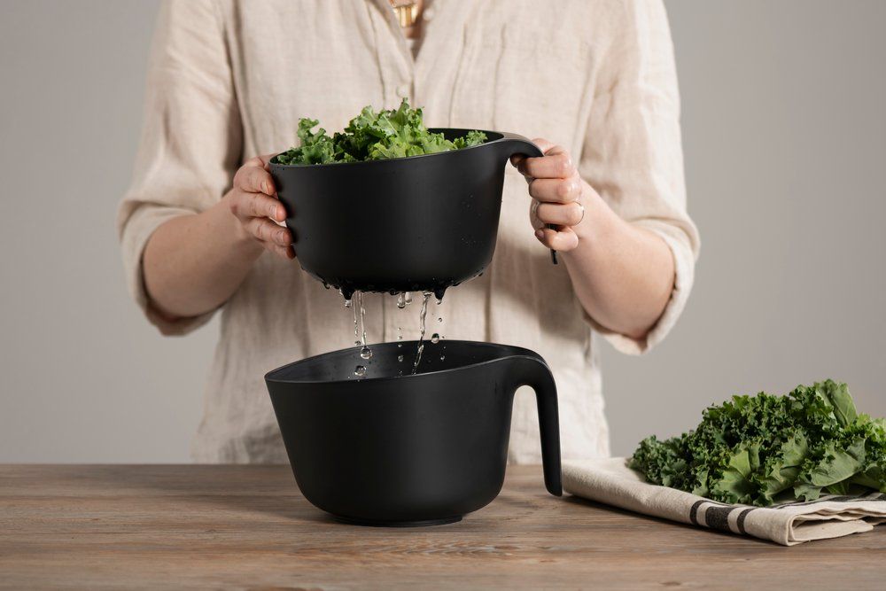 Kausi ja sõela komplekt toidu pesemiseks, nõrutamiseks ja ettevalmistamiseks. Komplekt on valmistatud 80% ulatuses taaskasutatud PET-plastist.