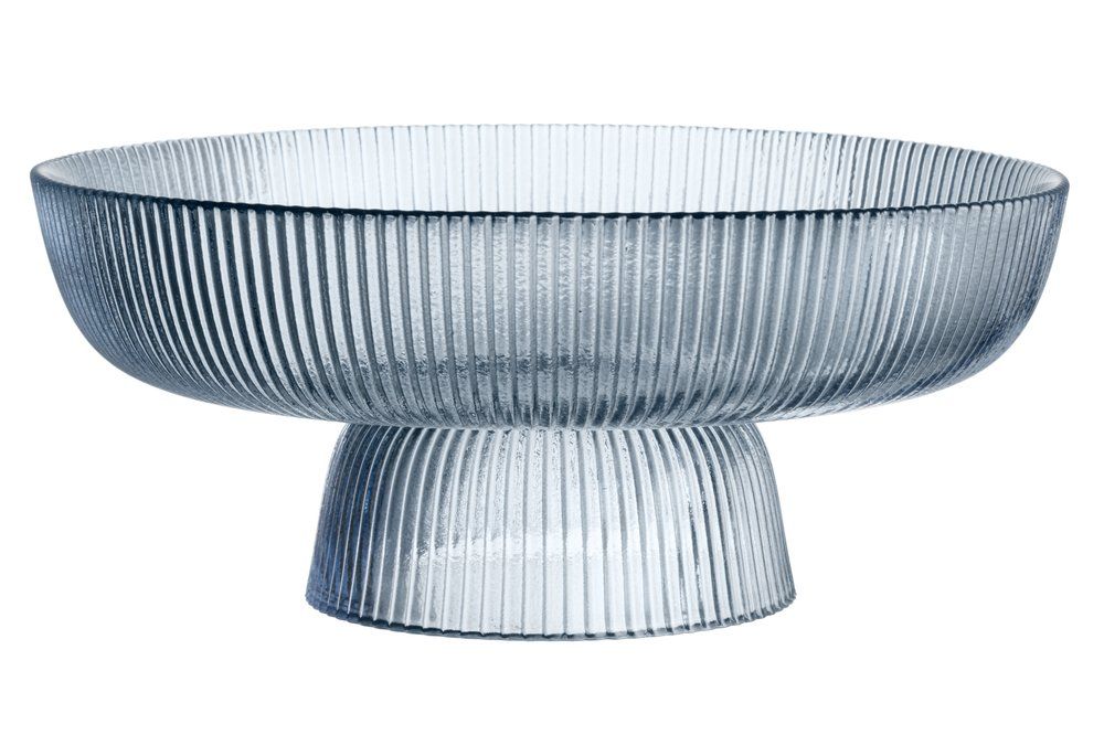 Maku jalaga kauss sobib kookide, puuviljade ja suupistete serveerimiseks. 26 cm läbimõõduga kauss on reljeefse pinnaga ning toetub laiale jalale, mis tõstab serveeritava esile. Sinakas toon ja sooneline klaas lisavad pinnale struktuuri. Sobib kasutamiseks nii igapäevasel laual kui ka pidulikumal serveerimisel.