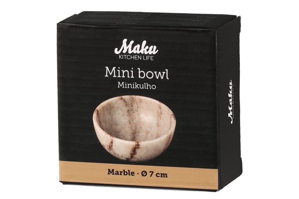 Maku marmorist väike kauss on mõeldud dipikastmete, sojakastme ja väiksemate lisandite serveerimiseks. Kompaktne suurus sobib hästi nii igapäevasele toidulauale kui ka suupistete pakkumiseks.