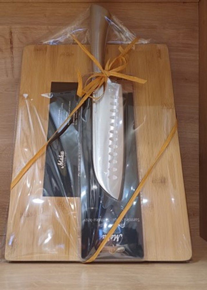 Praktiline kingikomplekt ühendab bambusest lõikelaua ja kvaliteetse Santoku noa, pakkudes mugavust nii igapäevaseks toidu ettevalmistuseks kui ka serveerimiseks. Bambusest lõikelaud on noasõbralik ja loomulikult antibakteriaalne, sobides ideaalselt kööki. Komplekti kuuluv roostevabast terasest Santoku nuga on mitmekülgne abiline viilimiseks, tükeldamiseks ja hakkimiseks – tera õõnestatud serv loob väikesed õhutaskud, mis aitavad toiduainetel kergemini tera küljest eemalduda.