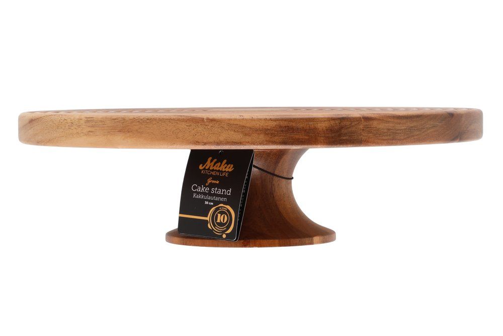 Stiilne ja elegantne Maku Groove sari toob sinu kööki looduslähedase ilu ja ajatu võlu. See kauni jalaga akaatsiapuust tordialus on ideaalne valik kookide, juustude, saiakeste või muude hõrgutiste serveerimiseks – olgu selleks igapäevane kohvilaud või pidulik tähtpäev.
