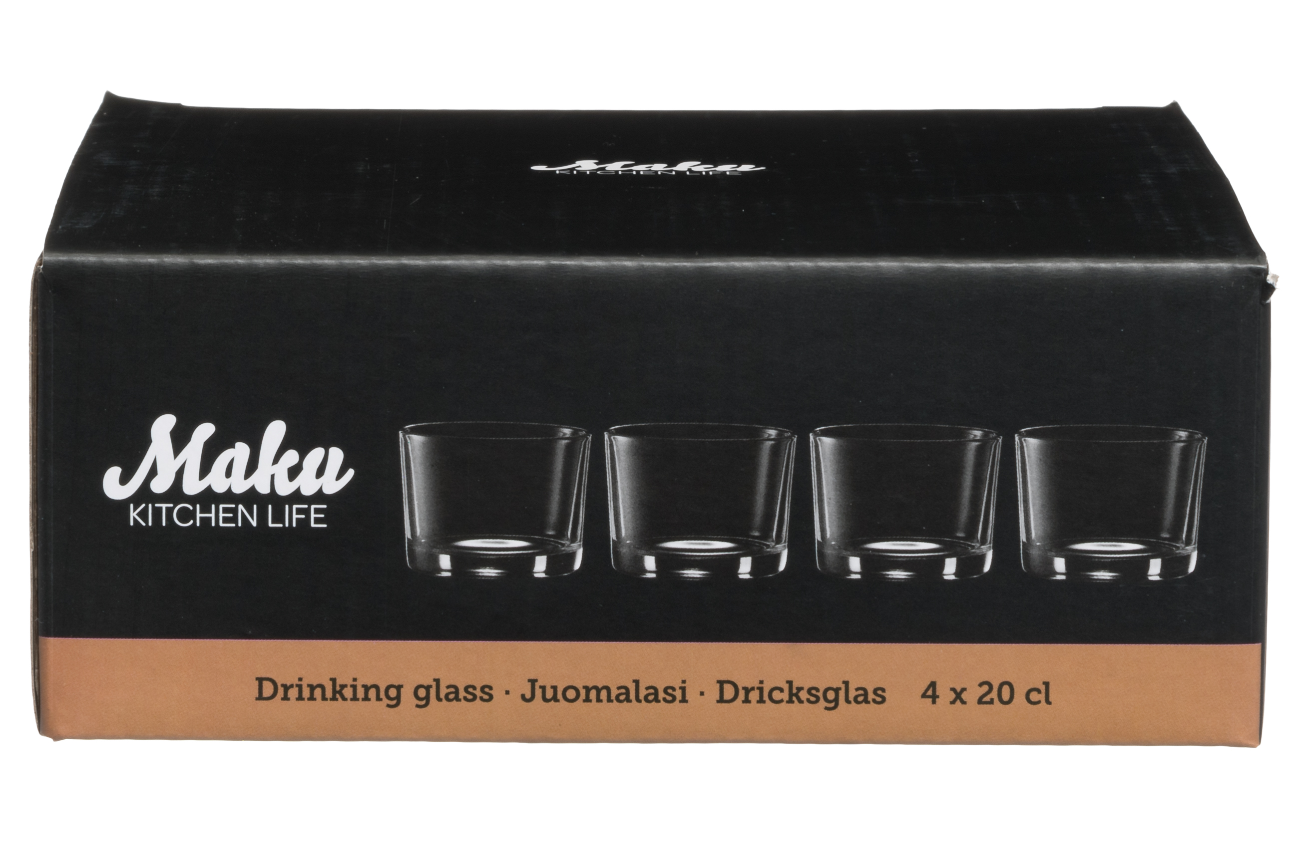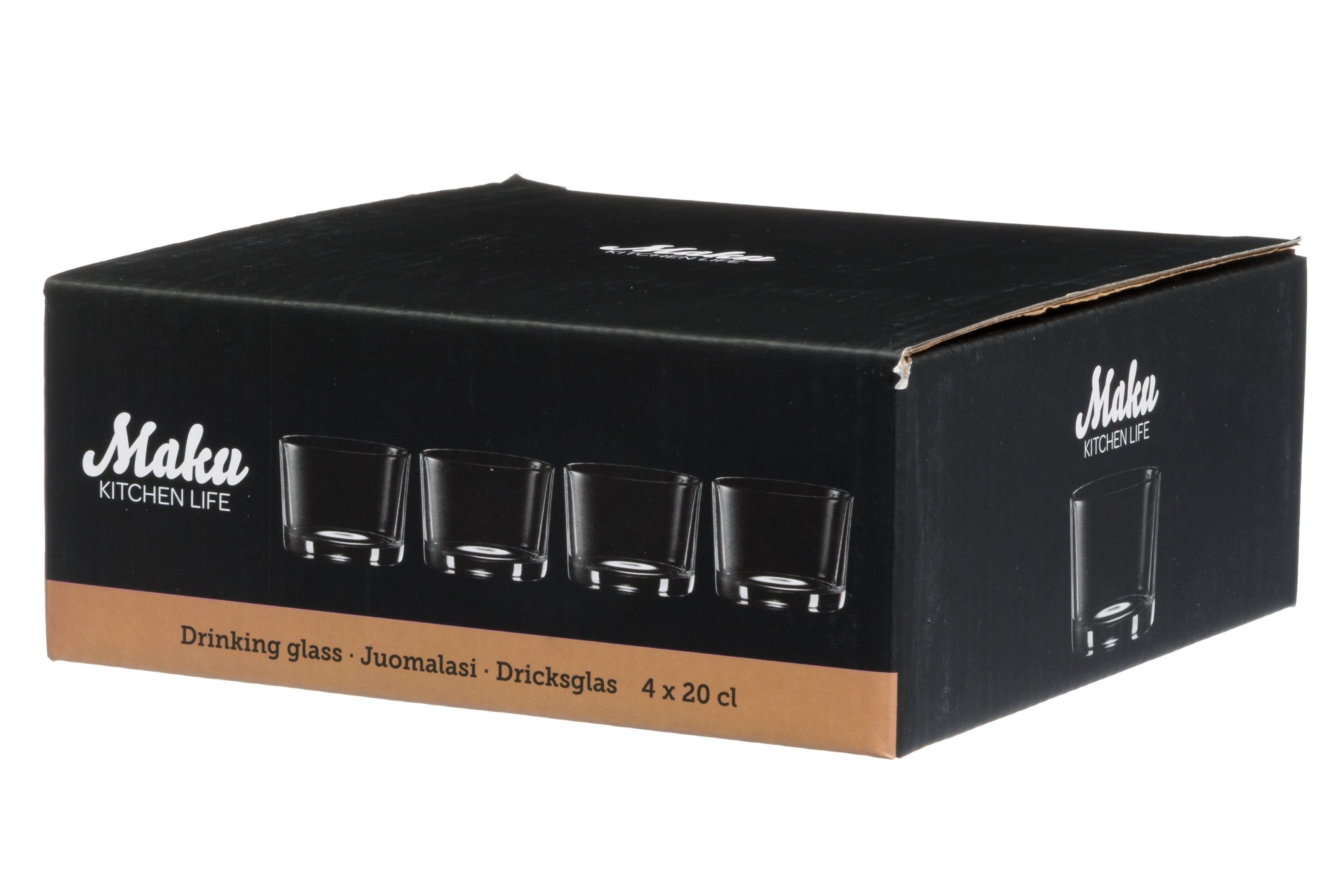 Materjal: klaas Komplektis 4 klaasi Mahutavus: 20cl Läbimõõt: 8cm Kõrgus: 6cm Kaal: 0,88kg Nõudepesumasinas pestav: jah