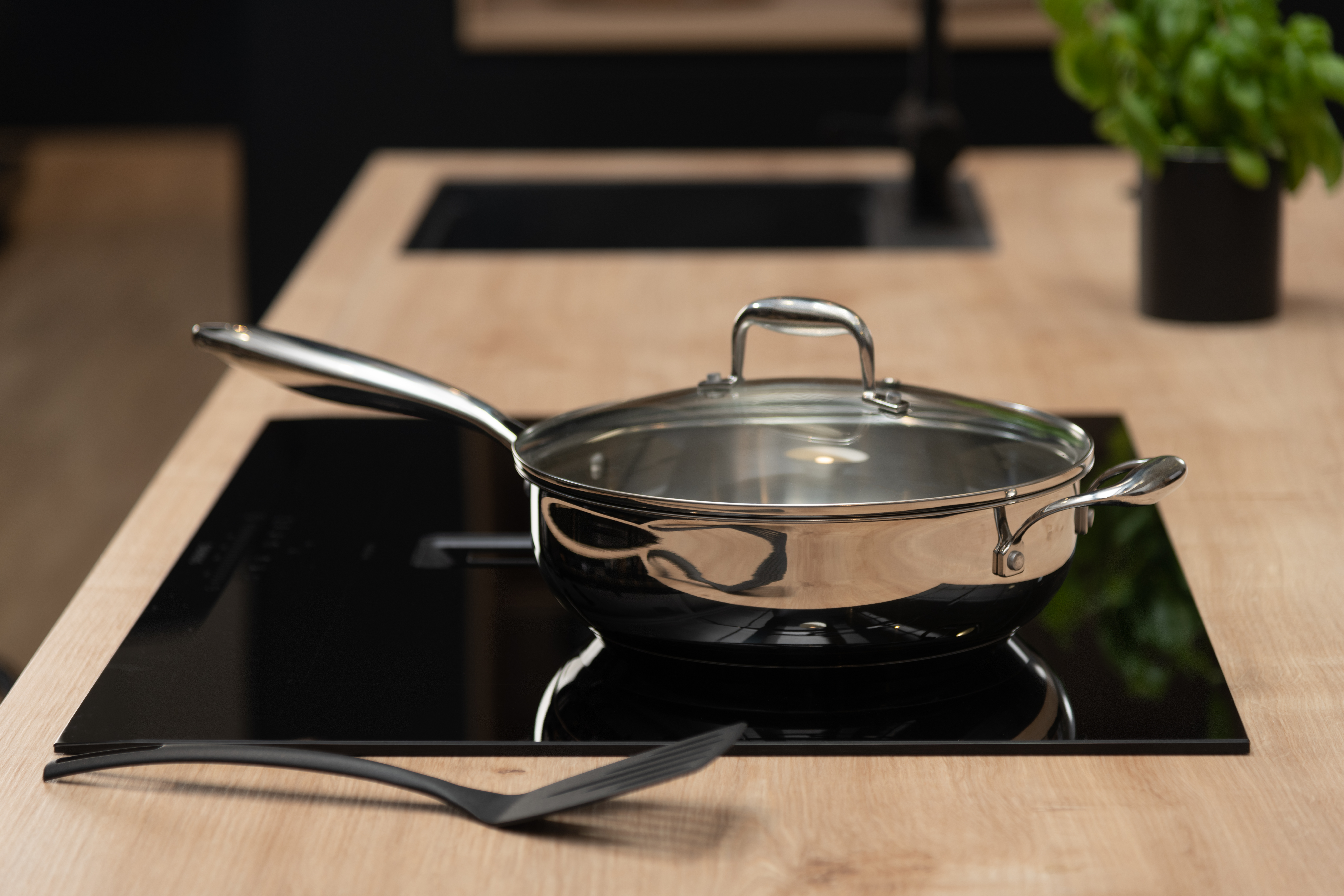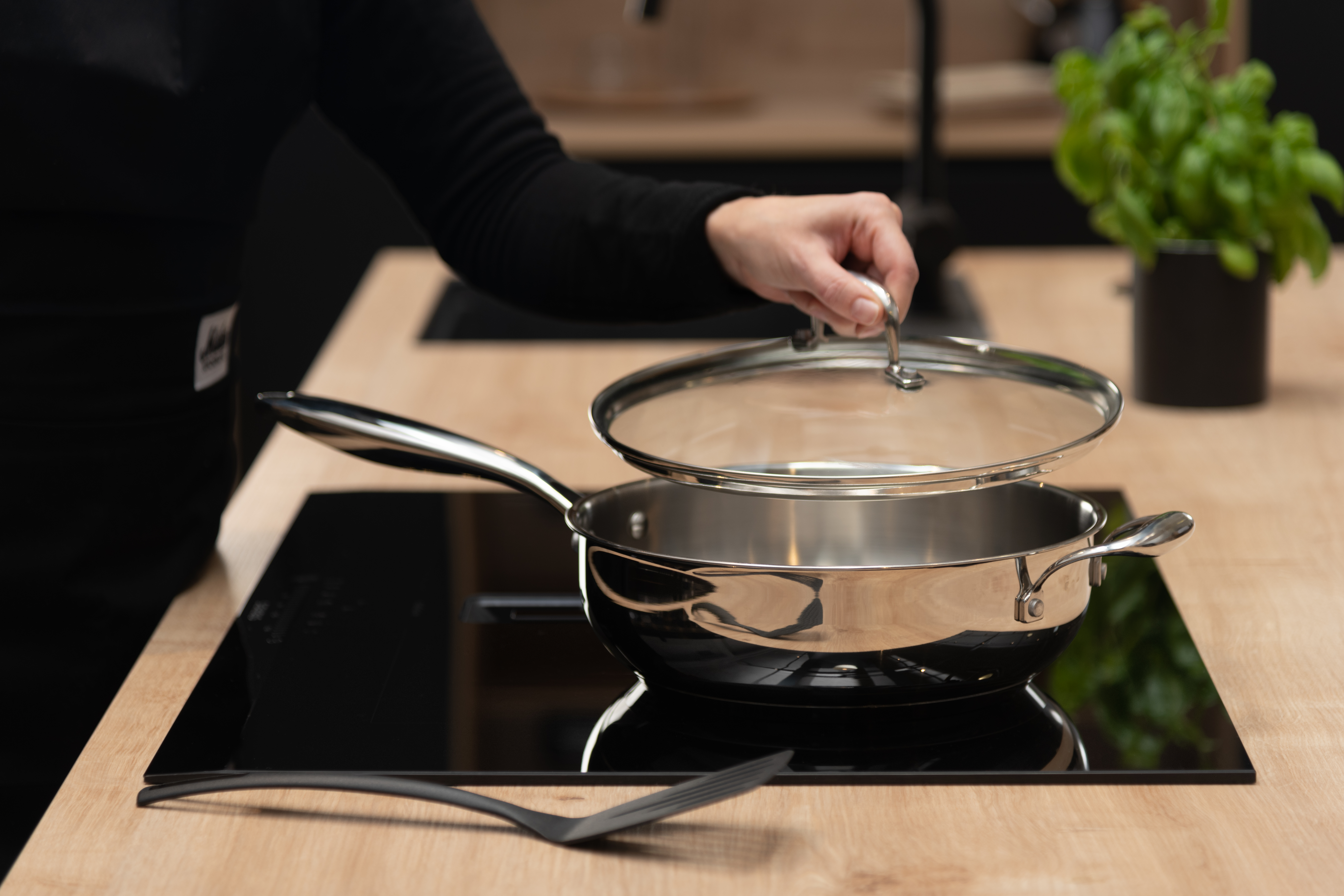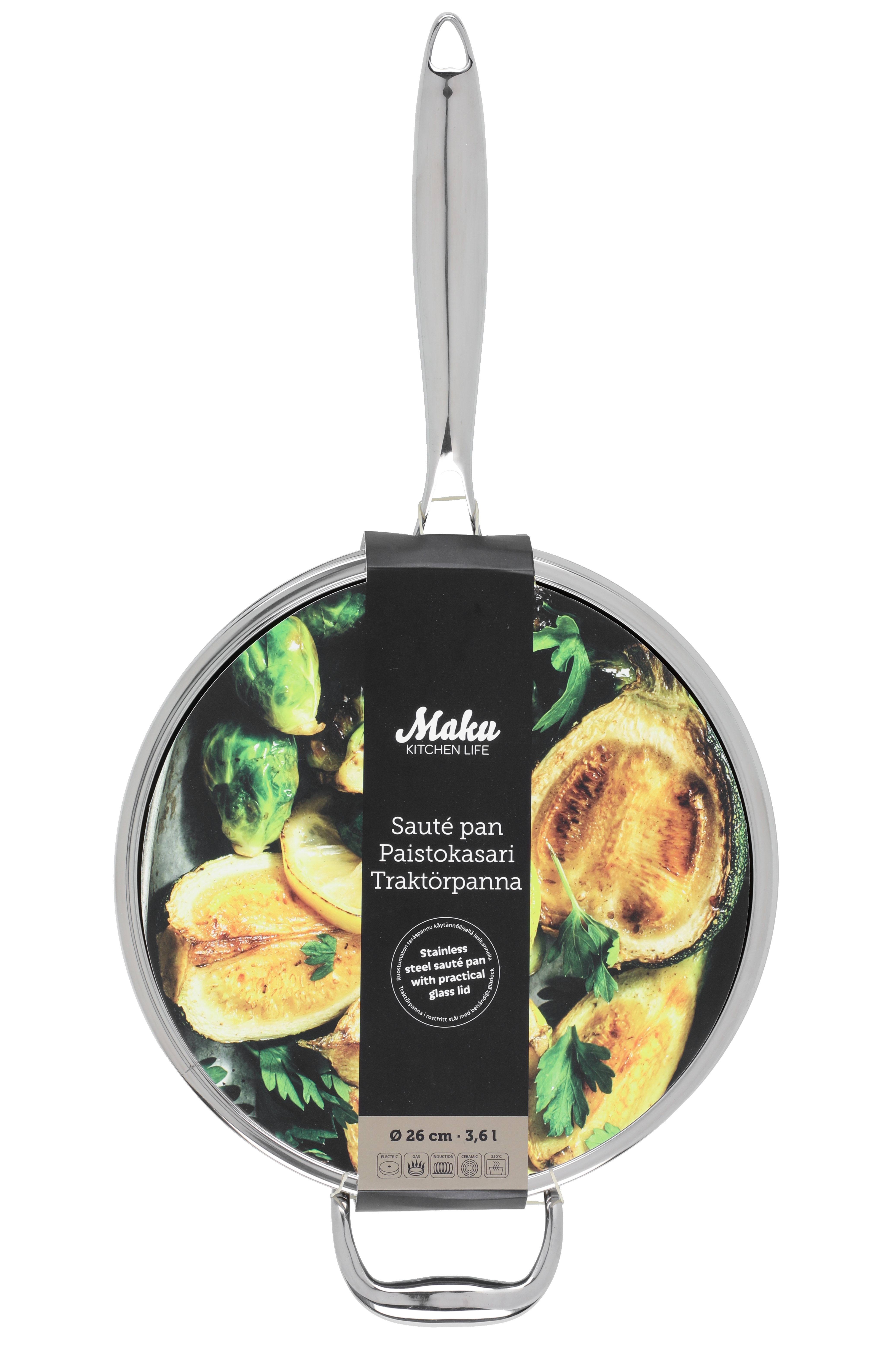 Roostevabast terasest elegantne klaaskaanega praepann. Kihiline põhi, mis võimaldab soojust ühtlaselt ja tõhusalt jaotada, vähendades toidu kõrbemisohtu. Ühildub kõigi pliidiplaatidega ning on ahjukindel.