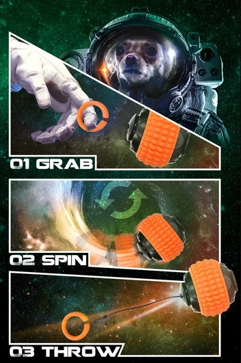 Haara rõngast, keeruta ringi ja viska pall kaugele. Nöör rullub ise palli sisse. Kummis olevad servad masseerivad koera igemeid ja aitavad hambaid puhastada.