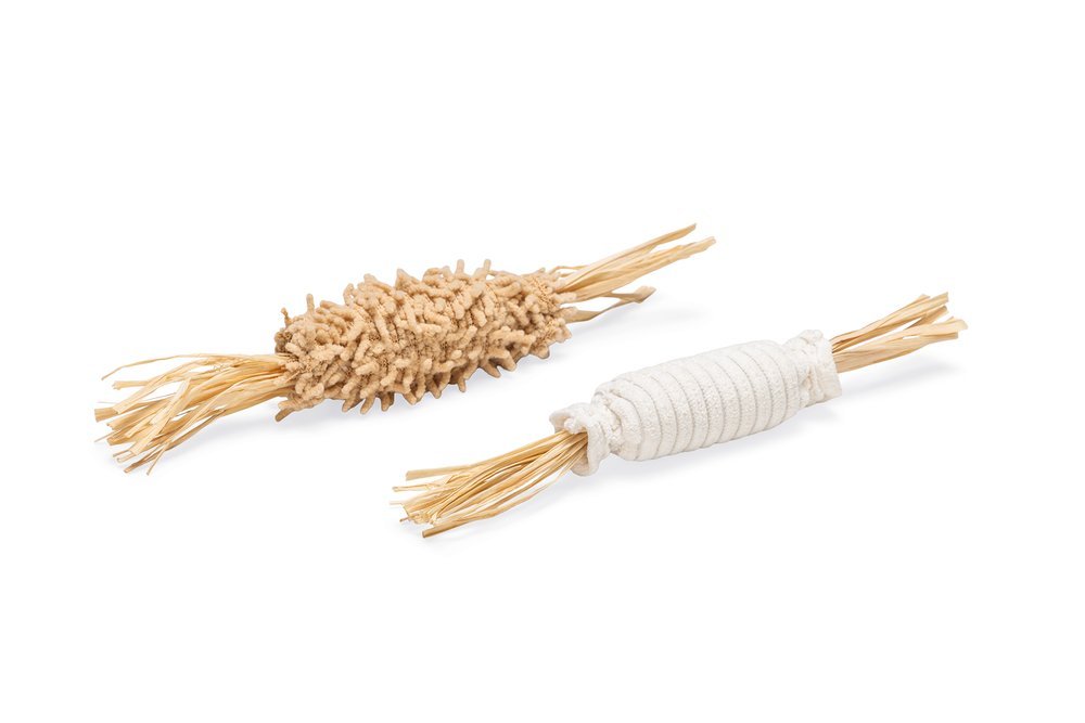 Beeztees Eco kassimänguasjade komplekt Jenna koosneb kahest lõbusast lelulindist, mis on valmistatud erinevat tüüpi 100% taaskasutatud fliisist. Need loodussõbralikud mänguasjad sobivad täiuslikult kassi mängu- ja kaisukaaslasteks.
