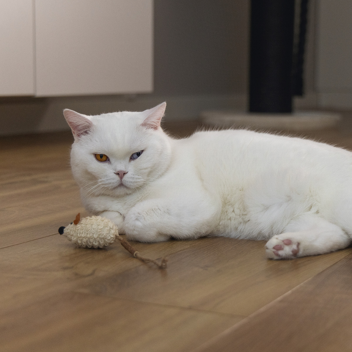 Realistlik kuju ja materjalid kutsuvad looma mänguasja jälitama ning püüdma. Sabal olev puidust detail julgustab närimist ja pakub täiendavat stimulatsiooni. Toode on mõeldud siseruumides kasutamiseks ning sobib hästi iseseisvaks ajaviiteks.